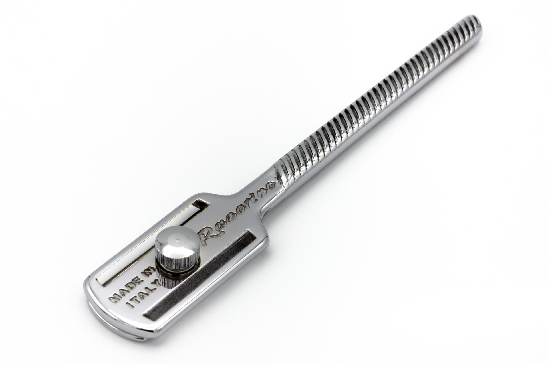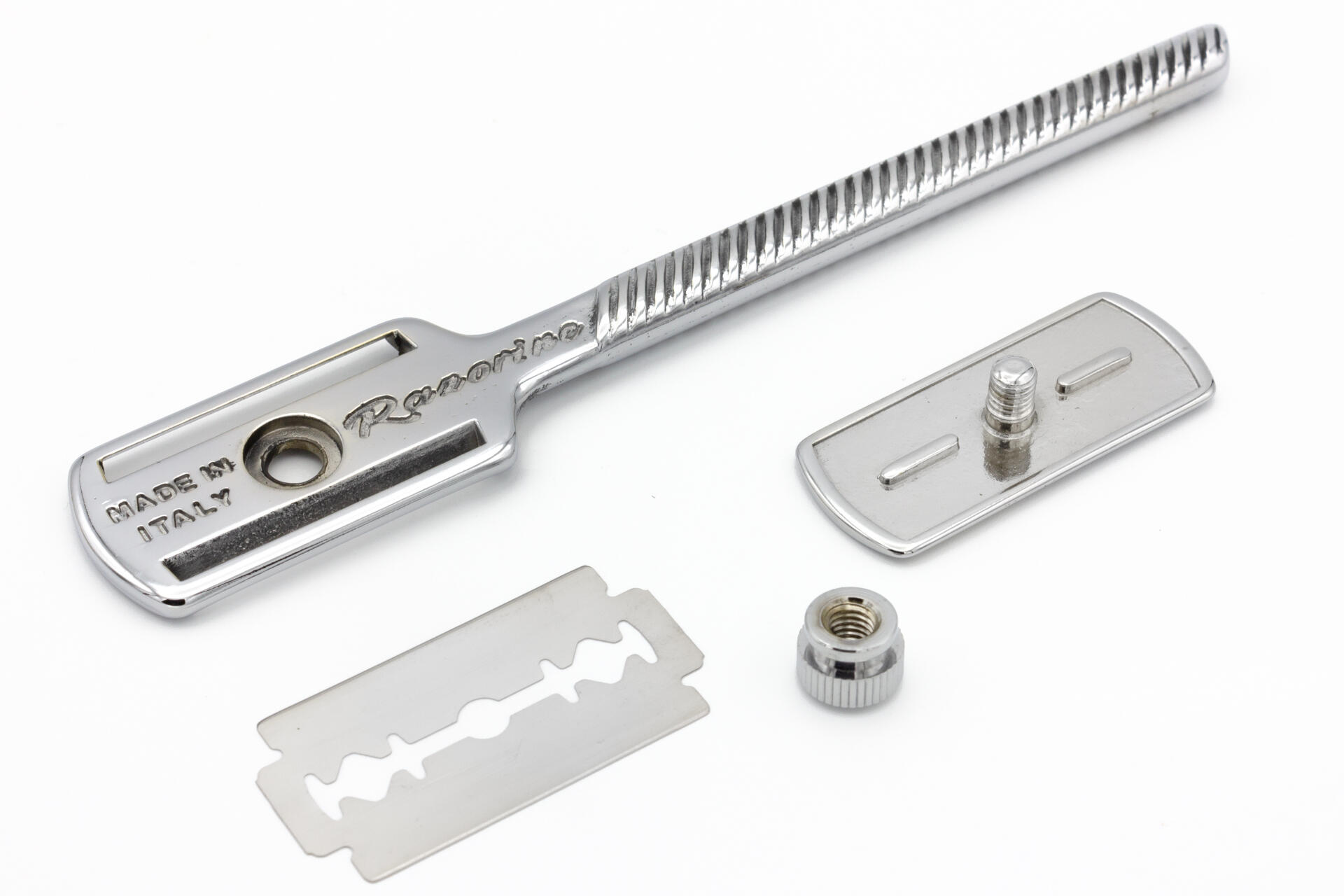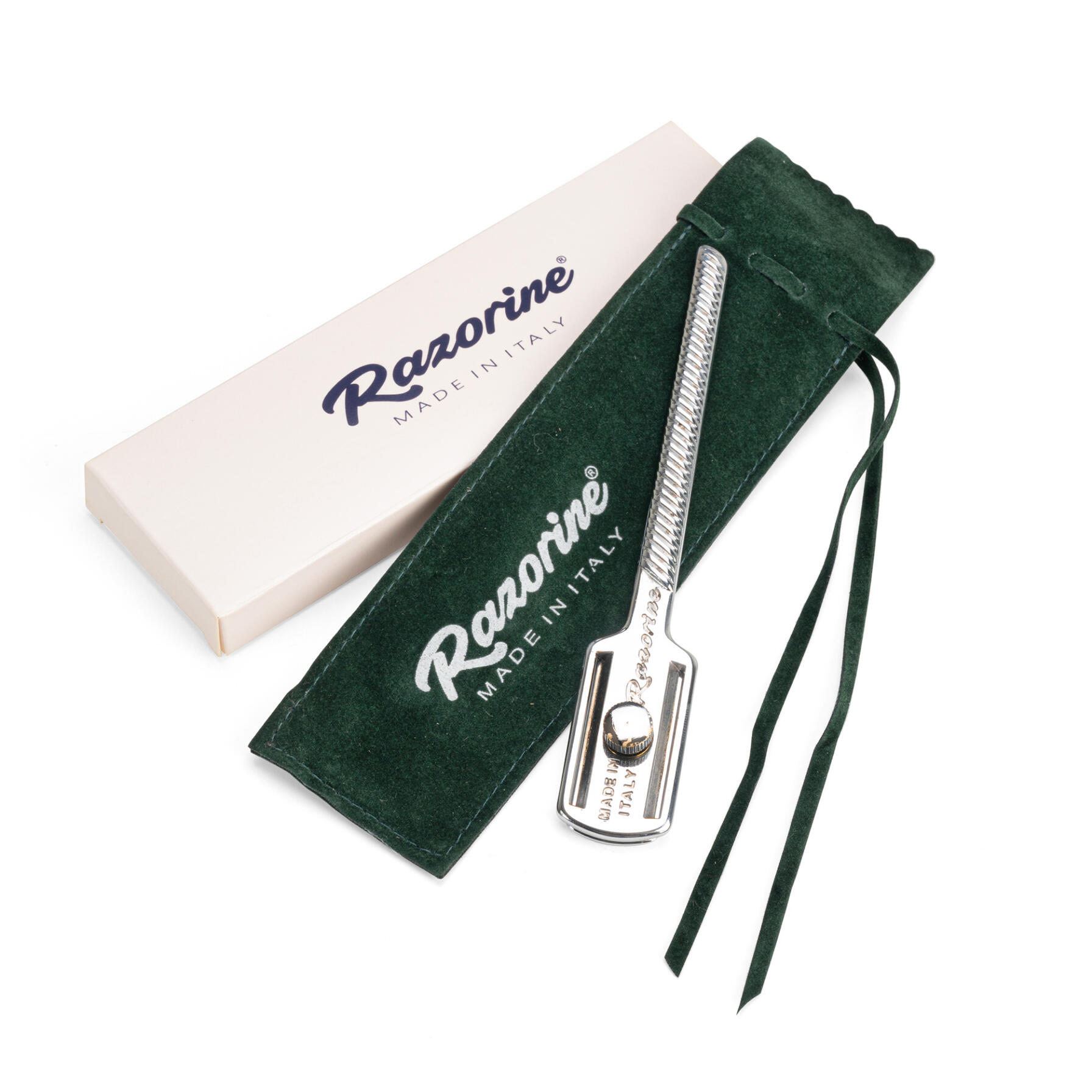 Razorine® is the razor that was born in the wake of the great tradition of Italian barber schools.Conceived in design and functionality during the first half of the 20th century to give a practical and hygienic alternative to double-edge razor blade users. Today Razorine® is back to delight the lovers of traditional shaving all around the world. Vastly improving the ergonomics and materials, yet preserving the classic spirit of this timeless razor. Razorine is proudly made in Italy, completely made of precious brass in every single component, as well as the hand-made polishing and the mirror chrome coating. Using the same techniques and often the same production machines of a bygone era.Razorine® can be used with both hands, it is ideal for daily shaving, but it is also an indispensable barber tool. It offers the possibility to shave in total safety thanks to the bars of protection and the particular geometry of the head, that allows you to easily find the proper blade angle for the perfect shave!Razorine® Made in Italy is a registered trademark and a patent design.